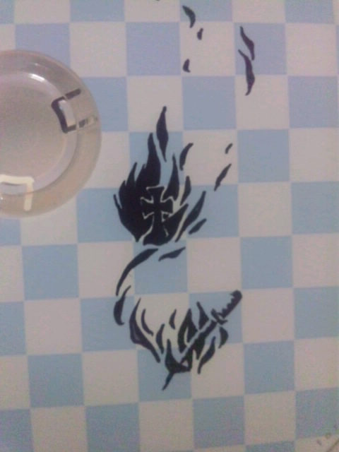 炎と日本刀と十字架をデザインしてみました。