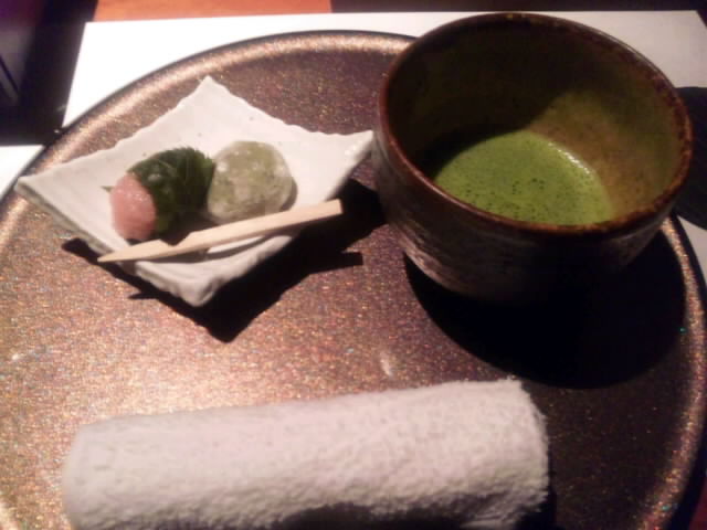 ウーロン茶と抹茶と桜餅、草餅を頂きました。